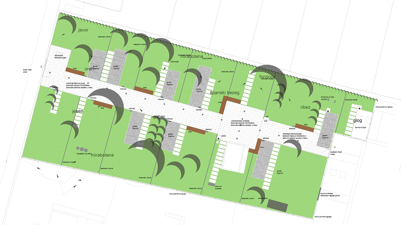 Ob stavbi Agencije RS za okolje vLjubljani se načrtuje nova parkovna površina, ki bo zainteresirani javnosti prikazovala glavne fenološke fenomene. Na sorazmerno majhni površini se združuje narovoslovna vsebina (gred grmovnic in dreves), ki olistajo ali cvetijo v različnih letnih obdobjih in manjša površina za zaposlene (malica, manjše predstavitve). Zasnova skuša združiti omenjena koncepta in obenem na trajnosten in robusten način zasnovati parkovne prvnine. V času podnebnih sprememb in zavedanju problemtaike okolja je tematika in lokacija izjemno primerna. Čakamo na naročila iz ostalih regij.